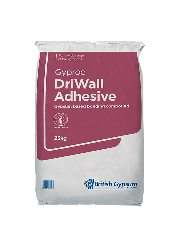 Gyproc DriWall Adhesive is a proven way of achieving a level wall when dot and dabbing plasterboard linings to existing backgrounds such as masonry wall.